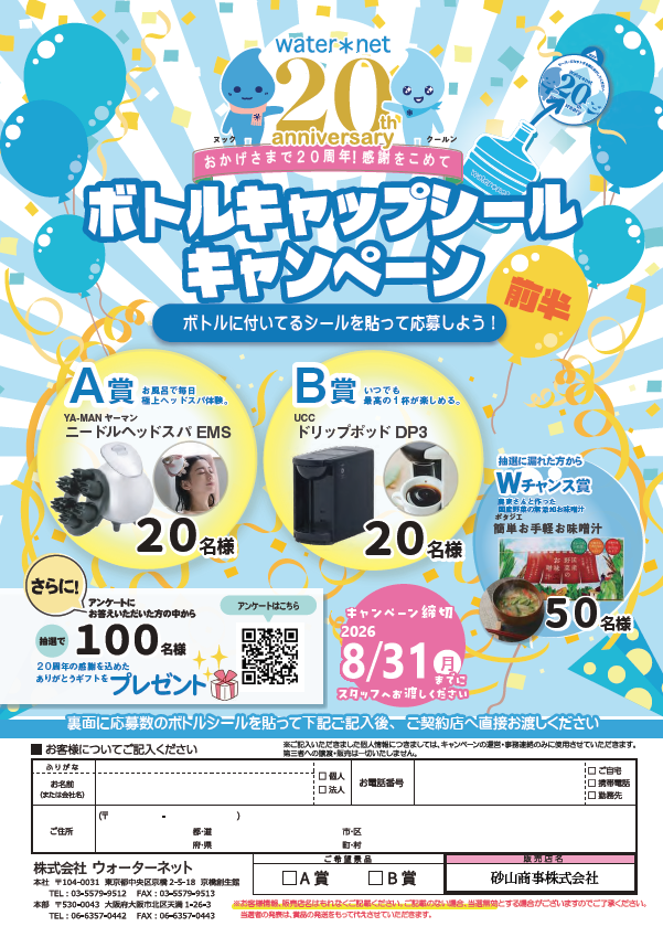 - 【8/31まで】ウォーターサーバーキャップシールCP開催中!