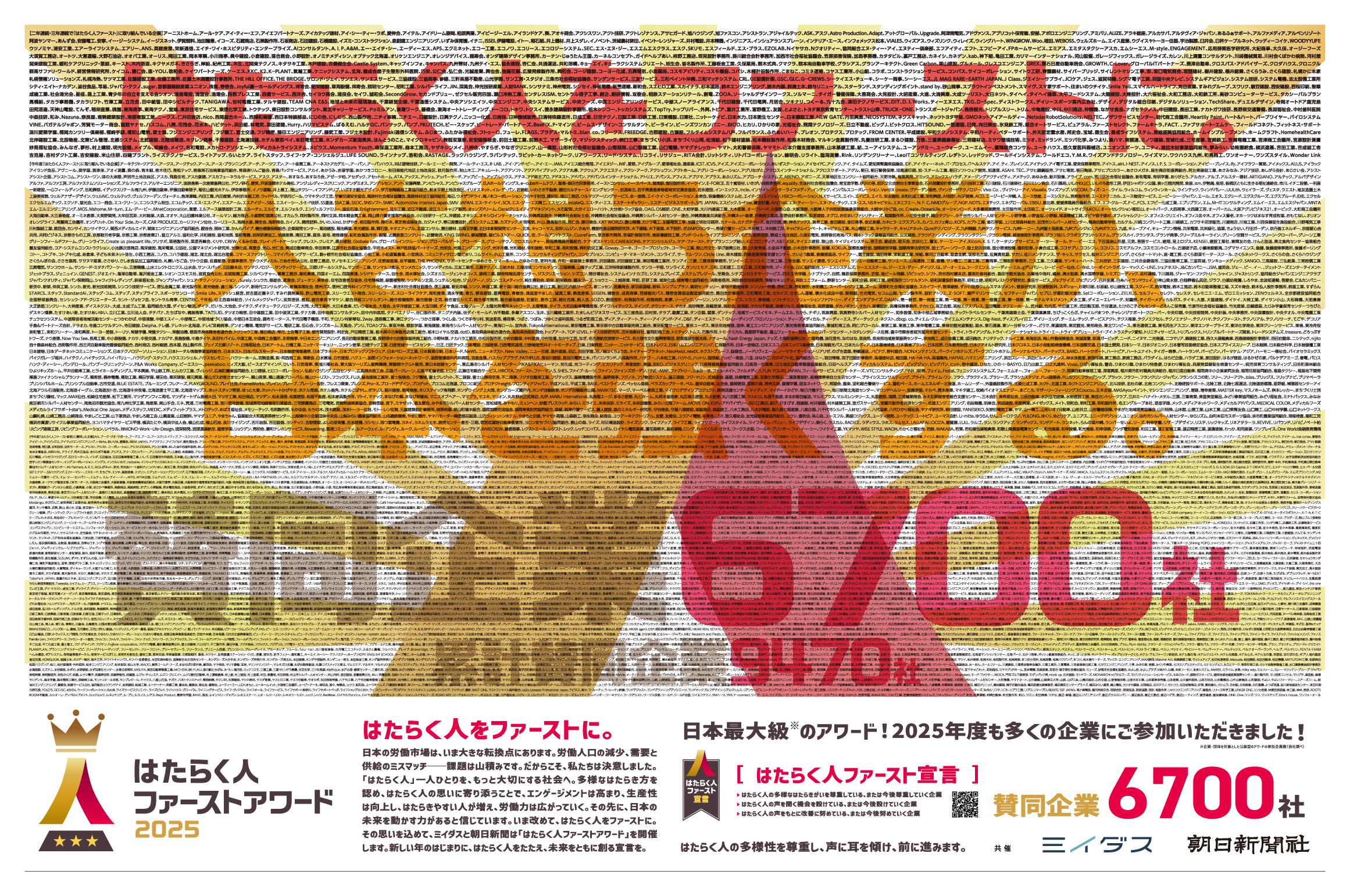 この広告には、働く人々を支え、企業としての社会的責任を果たしている賛同企業6,700社が掲載されています。